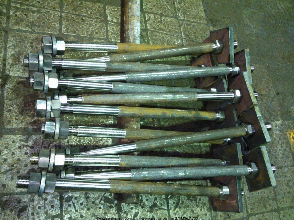 Фундаментный болт с анкерной плитой тип 2.1 М36х1700 купить в Москве оптом и в розницу предлагает интернет-магазин «Ле-Металл». Низкие цены за метр