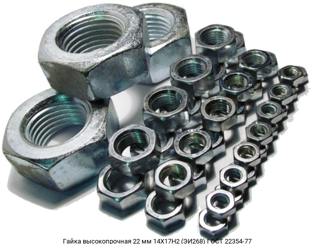 Гайка высокопрочная 22 мм 14Х17Н2 (ЭИ268) ГОСТ 22354-77 купить в Москве оптом и в розницу предлагает интернет-магазин «Ле-Металл». Низкие цены за метр