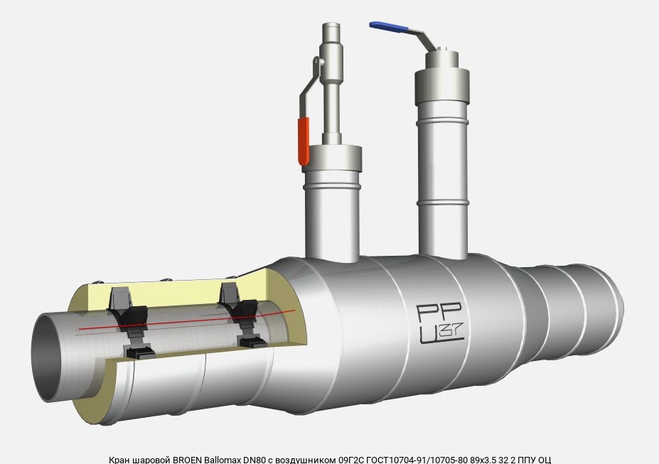 Кран шаровой BROEN Ballomaх DN80 с воздушником 09Г2С ГОСТ10704-91/10705-80 89х3.5 32 2 ППУ ОЦ
