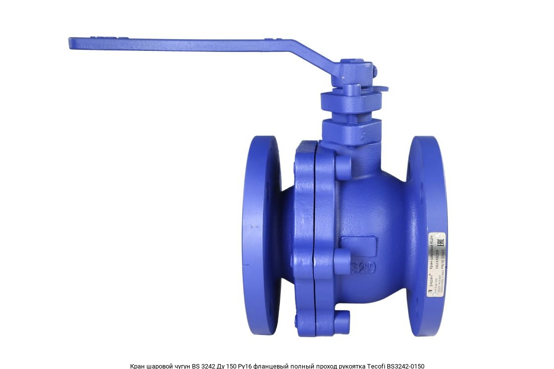 Кран шаровой чугун BS 3242 Ду 150 Ру16 фланцевый полный проход рукоятка Tecofi BS3242-0150