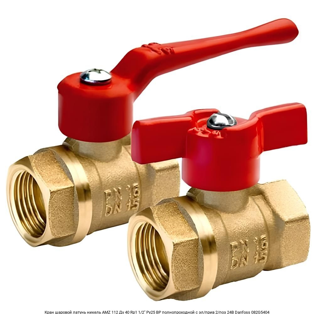 Кран шаровой латунь никель AMZ 112 Ду 40 Rp1 1/2" Ру25 ВР полнопроходной с эл/прив 2/поз 24В Danfoss 082G5404