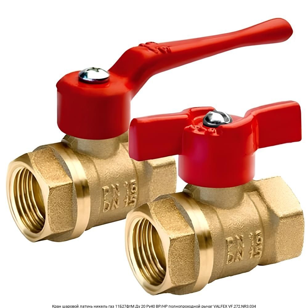Кран шаровой латунь никель газ 11Б27фтМ Ду 20 Ру40 ВР/НР полнопроходной рычаг VALFEX VF.272.NR3.034
