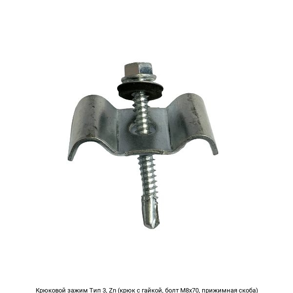 Крюковой зажим Тип 3, Zn (крюк с гайкой, болт М8х70, прижимная скоба)