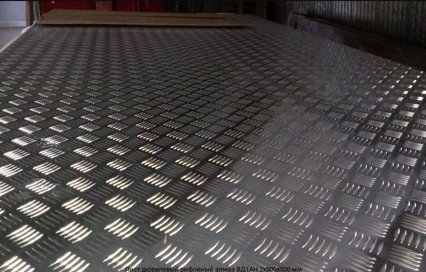 Лист дюралевый рифлёный алмаз ВД1АН 2х500х500 мм купить в Москве оптом и в розницу предлагает интернет-магазин «Ле-Металл». Низкие цены за метр