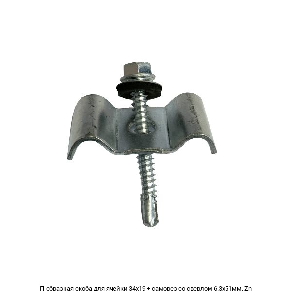 П-образная скоба для ячейки 34х19 + саморез со сверлом 6.3х51мм, Zn