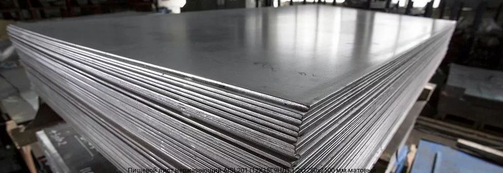 Пищевой лист нержавеющий AISI 201 (12Х15Г9НД) 1.2х1250х2500 мм матовый купить в Москве оптом и в розницу предлагает интернет-магазин «Ле-Металл». Низкие цены за метр