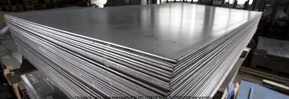 Пищевой лист нержавеющий AISI 201 (12Х15Г9НД) 1х1000х2000 мм матовый купить в Москве оптом и в розницу предлагает интернет-магазин «Ле-Металл». Низкие цены за метр