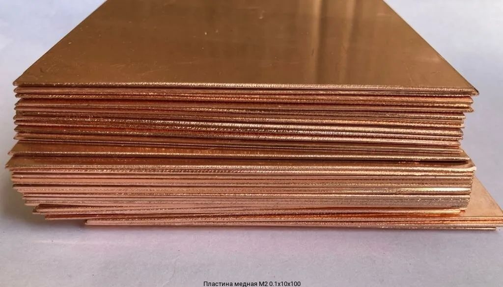 Пластина медная М2 0.1х10х100 купить в Москве оптом и в розницу предлагает интернет-магазин «Ле-Металл». Низкие цены за метр