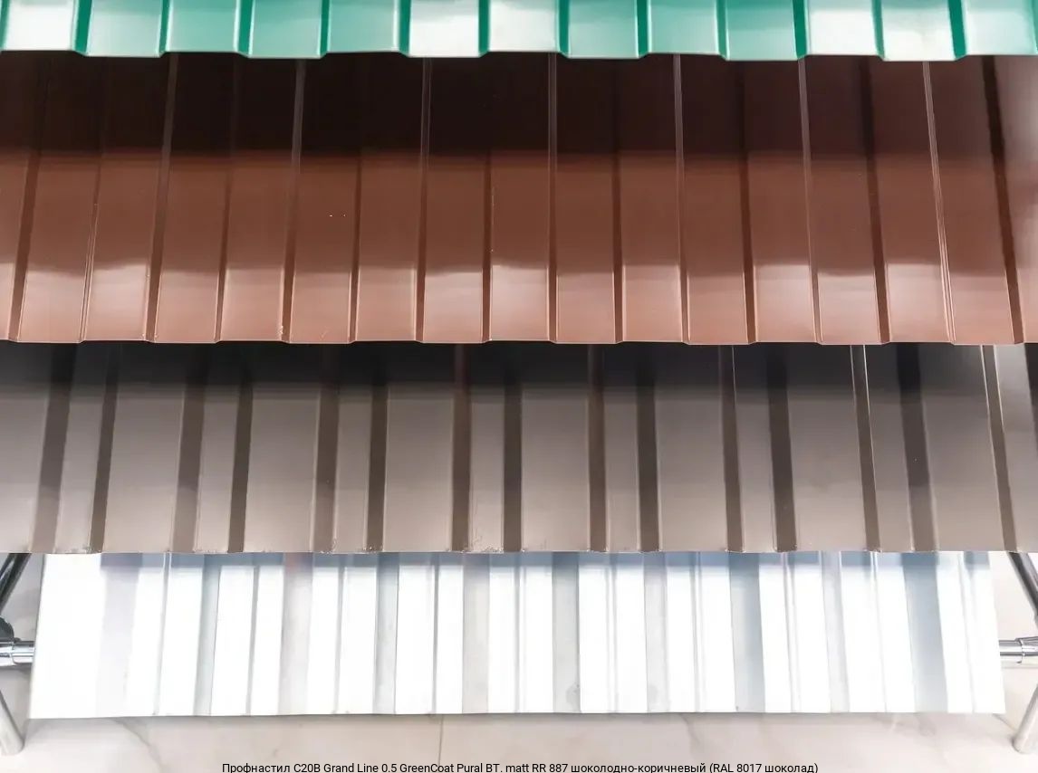Профнастил С20В Grand Line 0.5 GreenCoat Pural BT. matt RR 887 шоколодно-коричневый (RAL 8017 шоколад) купить в Москве оптом и в розницу предлагает интернет-магазин «Ле-Металл». Низкие цены за метр