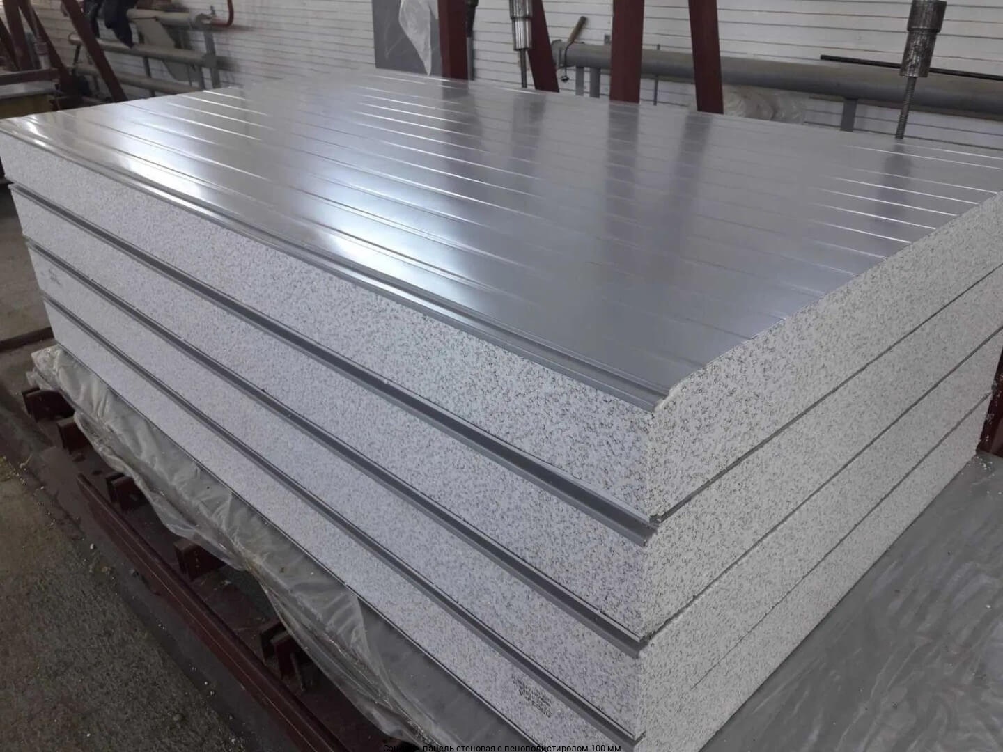 Сэндвич-панель стеновая с пенополистиролом 100 мм купить в Москве оптом и в розницу предлагает интернет-магазин «Ле-Металл». Низкие цены за метр