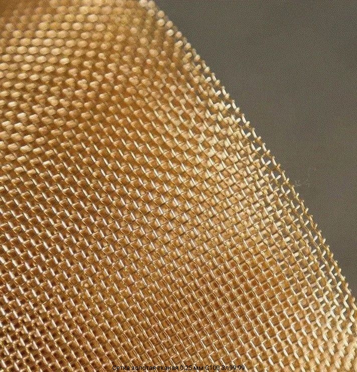 Сетка золотая тканая 0.25 мм С100 Зл99.99 купить в Москве оптом и в розницу предлагает интернет-магазин «Ле-Металл». Низкие цены за метр