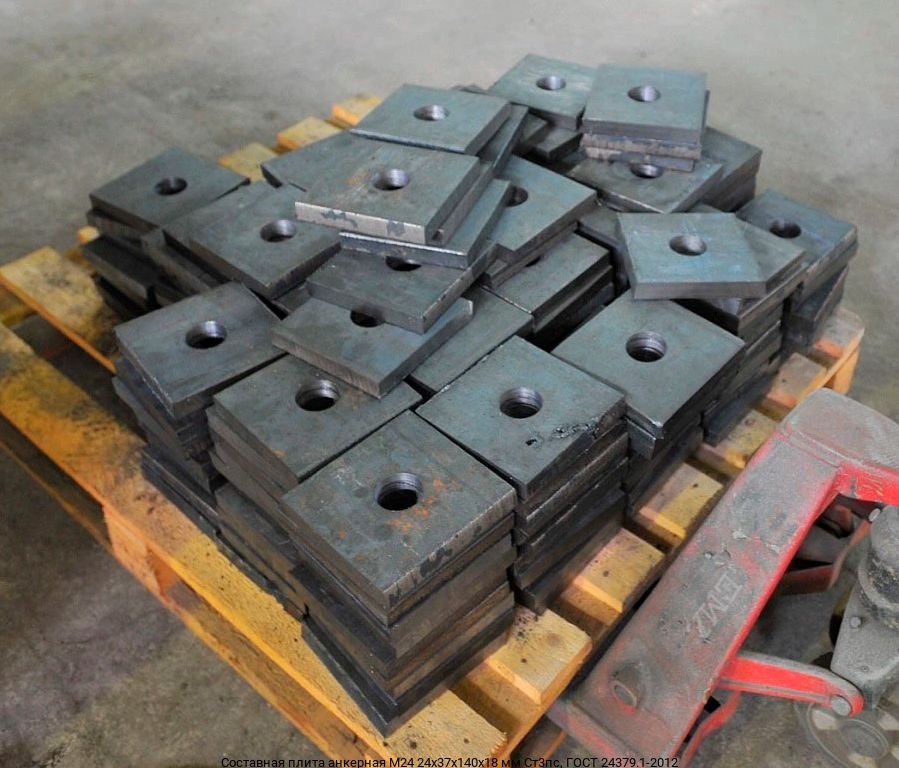 Составная плита анкерная М24 24х37х140х18 мм Ст3пс, ГОСТ 24379.1-2012
