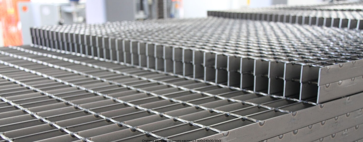 Ступени из прессованного настила P 600х240х30/30х3 купить в Москве оптом и в розницу предлагает интернет-магазин «Ле-Металл». Низкие цены за метр