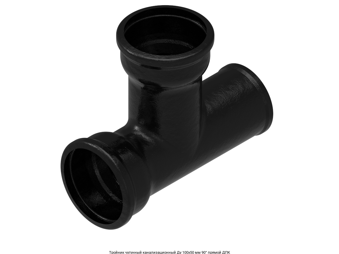 Тройник чугунный канализационный Ду 100х50 мм 90° прямой ДПК