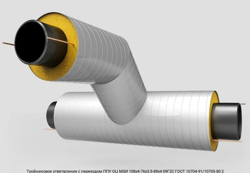 Тройниковое ответвление с переходом ППУ ОЦ МЗИ 108х4-76х3.5-89х4 09Г2С ГОСТ 10704-91/10705-80 2