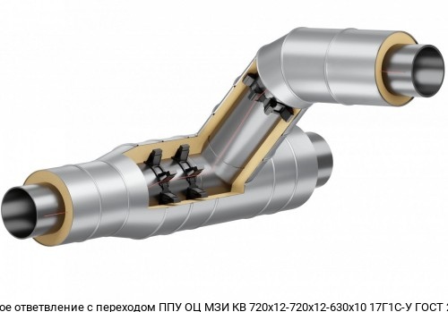 Тройниковое ответвление с переходом ППУ ОЦ МЗИ КВ 720х12-720х12-630х10 17Г1С-У ГОСТ 20295-85 1*