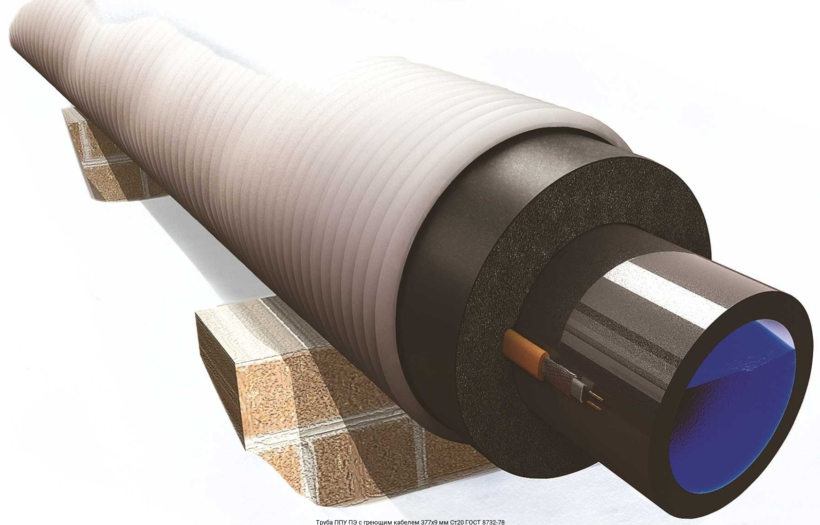 Труба ППУ ПЭ с греющим кабелем 377х9 мм Ст20 ГОСТ 8732-78 купить в Москве оптом и в розницу предлагает интернет-магазин «Ле-Металл». Низкие цены за метр
